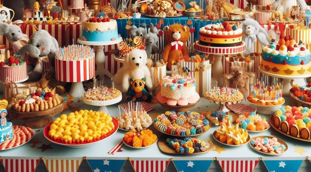 Circus Menu:Craft a menu filled with circus favorites! Popcorn, cotton candy, and a whimsical cake will be the culinary delights of the circus feast.